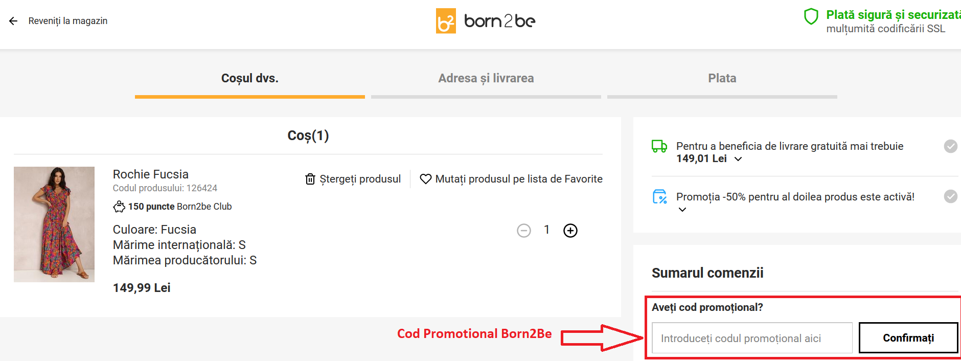 Instructiuni pentru adaugarea unui cod promotional Born2Be