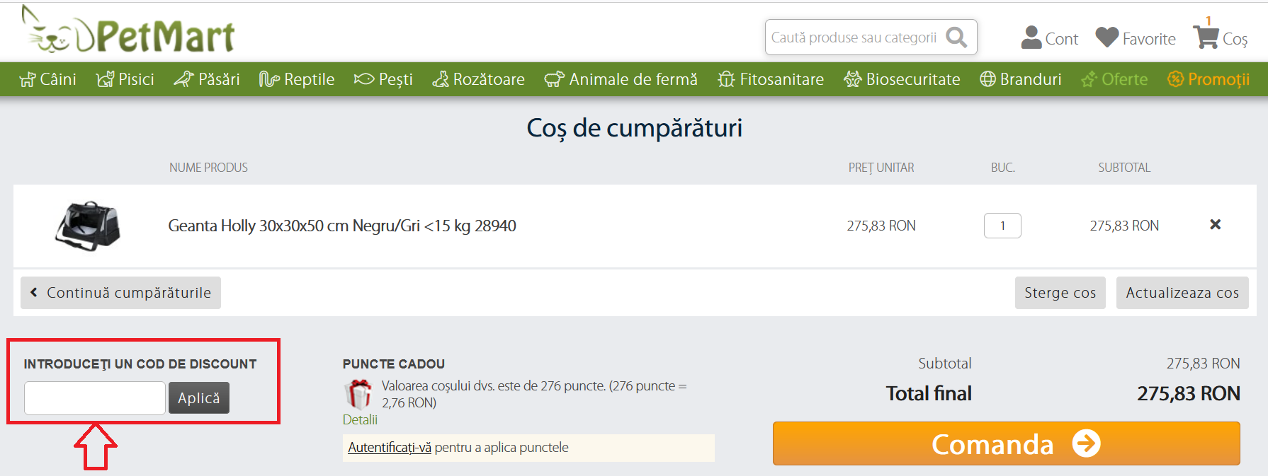 Cum introduceti un cod de discount la o comanda pe PetMart