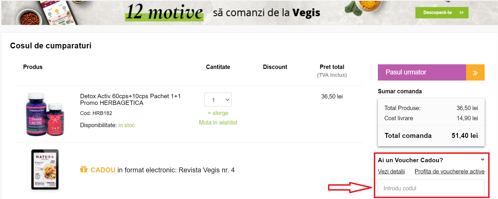 Cum sa aplicati un cod voucher Vegis la comanda dumneavoastra