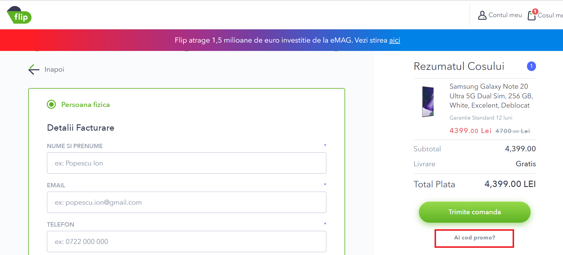 Cum aplici un cod promo Flip la o comanda ca sa cumperi mai ieftin